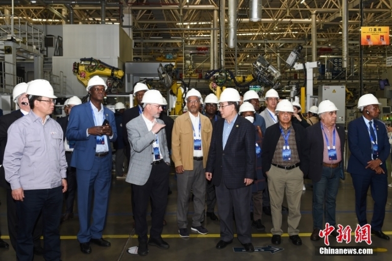 在渝期間,使節(jié)們參觀了重慶市規(guī)劃展覽館、廣陽島,感知重慶規(guī)劃發(fā)展以及城市生態(tài)建設情況;考察了重慶內陸國際物流樞紐展示中心和重慶鐵路集裝箱中心站,見證了中歐班列(成渝)發(fā)車;訪問了重慶海扶醫(yī)療科技股份有限公司、賽力斯汽車兩江智慧工廠等地,現場體驗重慶在科技創(chuàng)新、智能智造等方面的創(chuàng)新與活力。圖為3月22日,駐華使節(jié)代表團在賽力斯汽車兩江智慧工廠焊接車間參觀。中新社記者 何蓬磊 攝