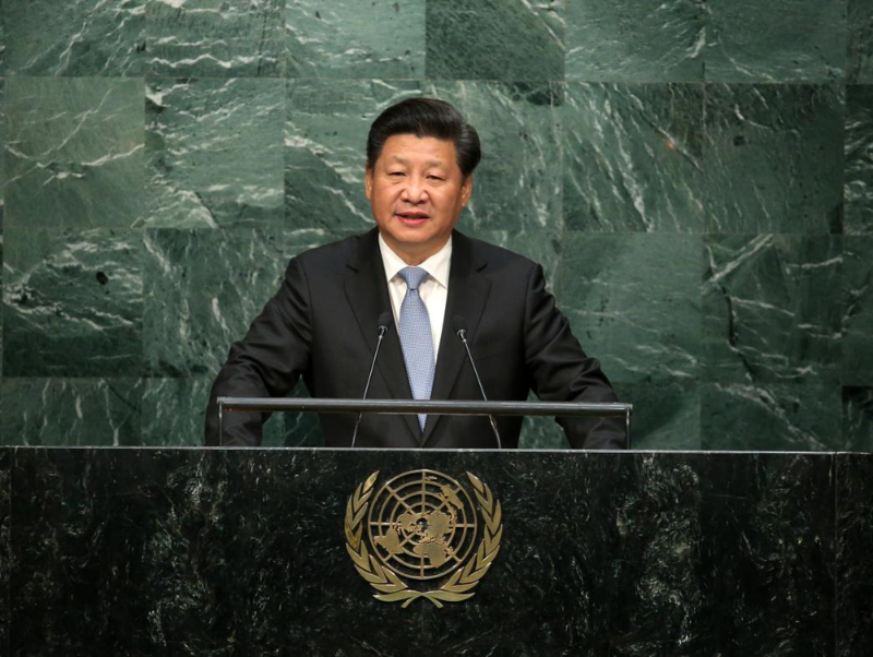 2015年9月28日,紐約聯(lián)合國總部。在第七十屆聯(lián)合國大會一般性辯論上,習(xí)近平主席發(fā)表重要講話,從伙伴關(guān)系、安全格局、發(fā)展前景、文明交流、生態(tài)體系五個方面系統(tǒng)闡釋人類命運共同體的主要內(nèi)涵。