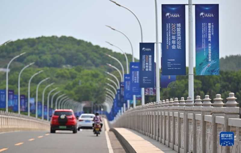 這是博鰲大樂大橋上的博鰲亞洲論壇2023年年會(huì)主題宣傳牌(3月25日攝)。