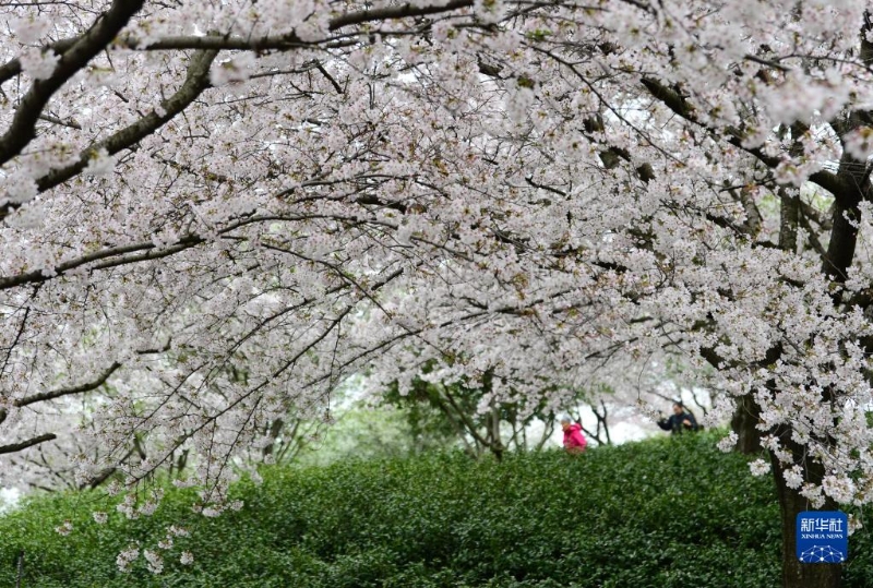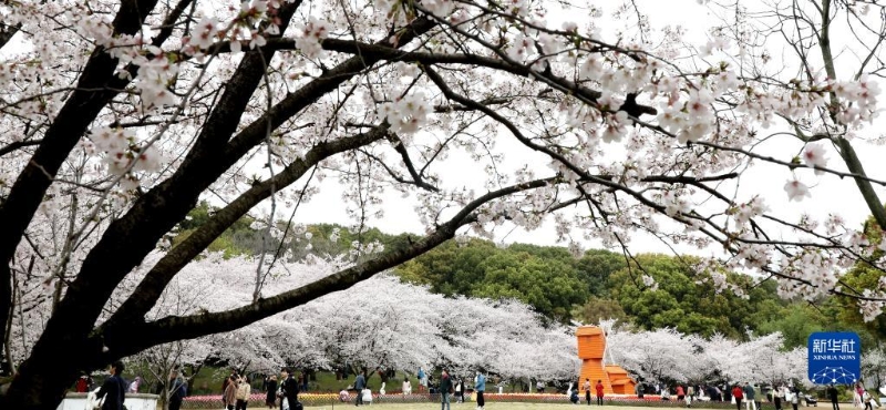 3月25日,游客在江蘇無錫紅沙灣生態(tài)園欣賞櫻花。