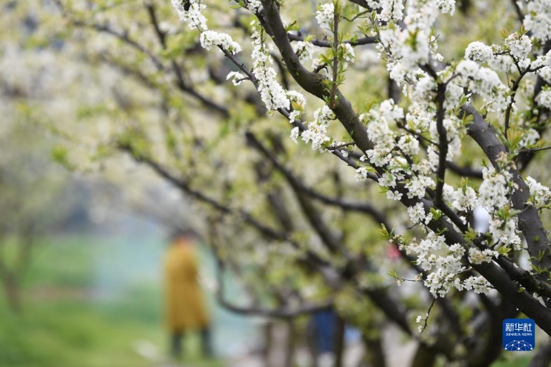 3月25日,游客在貴州省遵義市余慶縣白泥鎮(zhèn)哨溪村李子園里游玩。