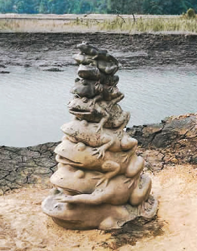 在臺灣中部的日月潭大竹湖水域,有一座著名的銅雕塑像“九蛙疊像”。作為反映日月潭水位的重要標(biāo)志,每逢干旱缺水,“九蛙”便集體“上岸”,提醒人們應(yīng)對旱情。