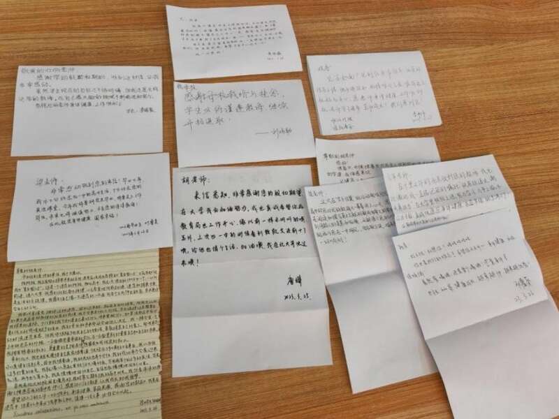 活動(dòng)還專門為在京學(xué)子們準(zhǔn)備了神秘驚喜,惠州一中黨委書記李海媚帶來(lái)了一封封來(lái)自母校班主任老師親手寫下的寄語(yǔ),讓眾多學(xué)子驚喜之余潸然落淚,紛紛提筆給老師們回信。蔣亞瓊老師給她的學(xué)生李暢宇的寄語(yǔ)非常的暖心,“暢宇,你這個(gè)‘油腔滑調(diào)’的學(xué)生,老師很懷念與你說(shuō)笑打趣的高三時(shí)光。老師希望你能成為新時(shí)代有理想、有擔(dān)當(dāng)、有能力、有家國(guó)情懷的新青年!”字里行間透露著老師對(duì)自己學(xué)生的自豪感。很多學(xué)生迫不及待的給老師們回信, “余軍老師,在千里之外的北京收到您的教誨,我無(wú)比激動(dòng),我一直銘記您的教誨‘鐵肩擔(dān)道義,潮頭勇?lián)?dāng)’,在大學(xué)里積極上進(jìn),努力學(xué)習(xí),力爭(zhēng)上游,不給您丟臉?!睂W(xué)生歐凌風(fēng)回信說(shuō)。