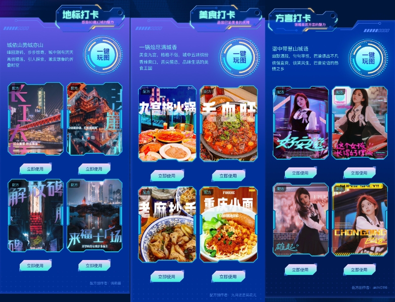 圖 3:地標打卡、方言打卡、美食打卡三種不同類型的玩圖配方