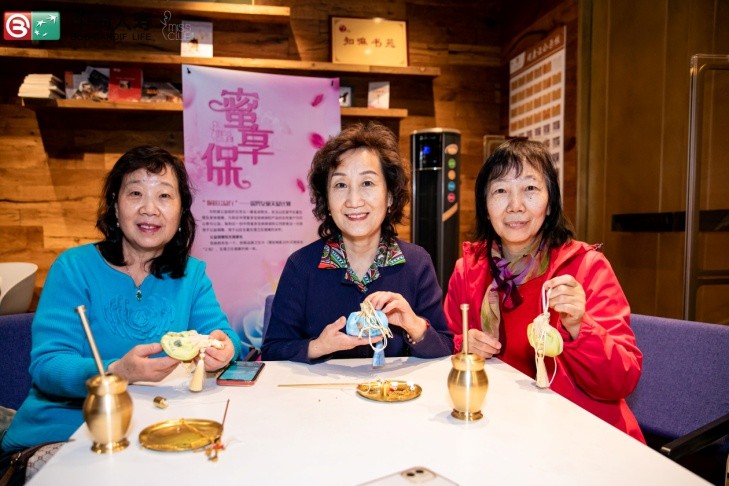 在接下來的養(yǎng)生香囊制作環(huán)節(jié)中更是為大家?guī)砹藷o限樂趣,香囊的功效側(cè)重于春季養(yǎng)肝明目、健醒脾開胃,活動(dòng)物料內(nèi)含佩蘭、藿香、檀香等7種藥材,兼具芳香化濕、開胃醒脾、美容養(yǎng)顏等功效?,F(xiàn)場(chǎng)嘉賓在老師的耐心指導(dǎo)下,通過對(duì)物料功效的了解,再通過自己動(dòng)手制作,不一會(huì)兒功夫,漂亮的香囊就完成了,大家紛紛拍照留念,紛紛向現(xiàn)場(chǎng)的工作人員表示“你們的活動(dòng)真棒,下次有機(jī)會(huì)我還想?yún)⒓印薄?/p>