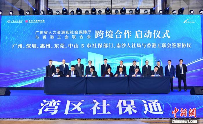 中新社廣州3月30日電 (記者 程景偉)廣東省人力資源和社會保障廳30日與香港工會聯(lián)合會在廣州南沙舉行跨境合作啟動儀式。廣州、深圳、惠州、東莞、中山等五市社保經(jīng)辦機構(gòu)以及廣州市南沙區(qū)人社部門,現(xiàn)場與香港工會聯(lián)合會簽訂協(xié)議,在香港開設7個廣東社保服務網(wǎng)點,為香港居民及在港居住的廣東參保人提供線上線下社保業(yè)務。