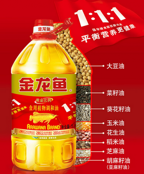 同類(lèi)之間換來(lái)?yè)Q去意義不大,最好是類(lèi)與類(lèi)之間換,吃完第1類(lèi)換第2、3、4類(lèi)。嫌麻煩的,也可以多多選擇營(yíng)養(yǎng)比較均衡的食用植物調(diào)和油,它可不是隨便幾種油混在一起就可以的,而是要兼顧營(yíng)養(yǎng)學(xué)知識(shí)和全國(guó)居民的飲食現(xiàn)狀,選擇不同食用植物油調(diào)配制成,具體是由哪些油調(diào)成的,可查看配料表。以金龍魚(yú)油為例,金龍魚(yú)非轉(zhuǎn)基因黃金比例調(diào)和油精選大豆油、玉米油、菜籽油、葵花籽油、花生油、芝麻油、亞麻籽油、稻米油共8種植物油,按照黃金比例調(diào)配而成,有利于人體膳食脂肪酸平衡,更營(yíng)養(yǎng)更健康。
