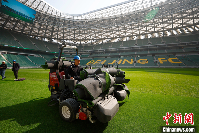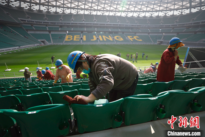 據(jù)中赫工體公司副總經(jīng)理宋鵬介紹,“新工體”確定將從2023年起重新作為北京國安足球俱樂部中超聯(lián)賽主場(chǎng)使用。記者在場(chǎng)館看到,6.8萬張“國槐綠”座椅、東看臺(tái)用北京國安黃綠兩個(gè)主題色拼出的“BEIJING FC”字樣、主隊(duì)更衣室天花板上的醒目國安隊(duì)徽……“新工體”是蓄勢(shì)待發(fā)的賽場(chǎng),也將成為國安隊(duì)員與球迷共同的“家”。