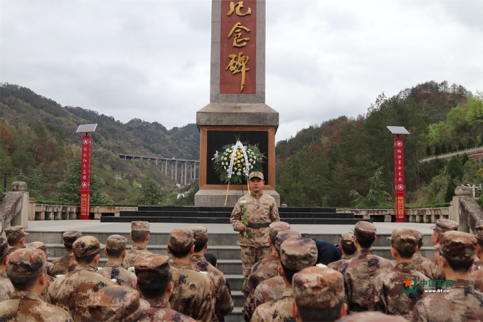 貴州省習(xí)水縣人武部官兵在青杠坡紅軍烈士紀(jì)念碑前開(kāi)展緬懷先烈活動(dòng)。何舜 攝