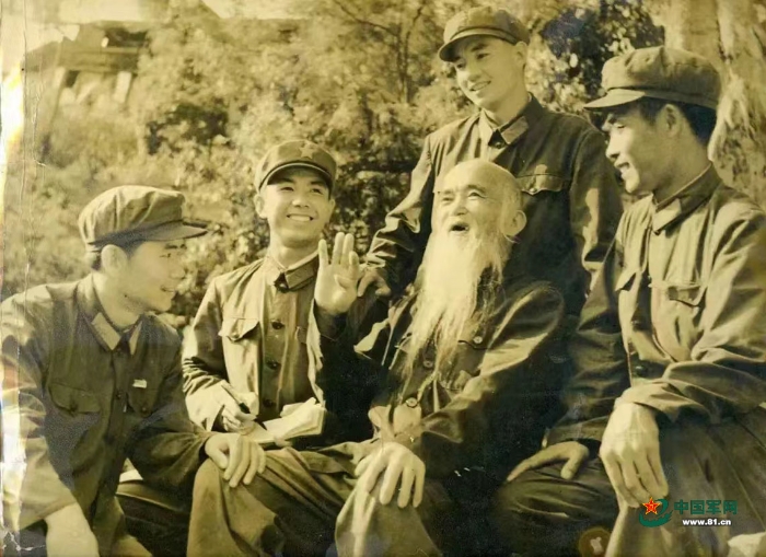 老紅軍何木林生前為部隊(duì)官兵講長(zhǎng)征故事。(資料圖)
