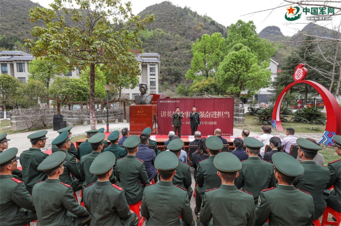 官兵在覃禮廣烈士銅像前開展主題教育活動(dòng)。劉中海 攝