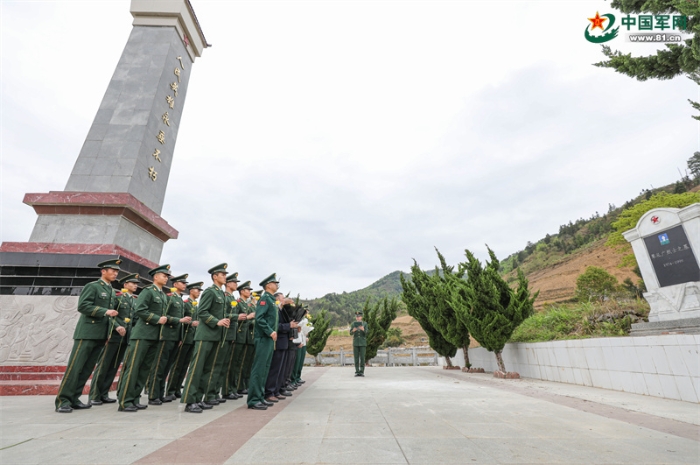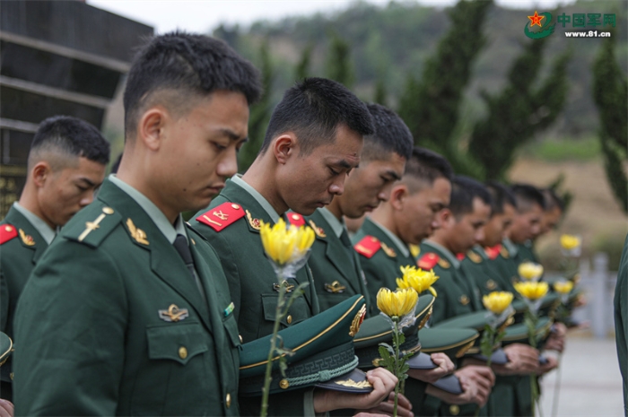 官兵們向覃禮廣烈士鞠躬致敬。唐明洋 攝