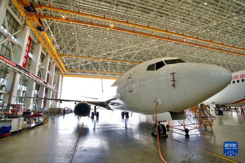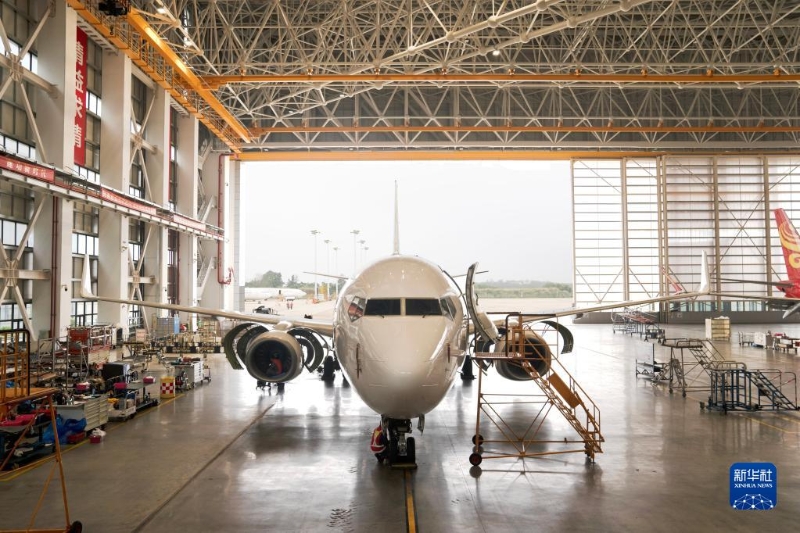 3月31日,在海南自貿(mào)港一站式飛機(jī)維修產(chǎn)業(yè)基地內(nèi),進(jìn)境飛機(jī)接受飛機(jī)發(fā)動(dòng)機(jī)、應(yīng)急設(shè)備等多項(xiàng)檢修項(xiàng)目。