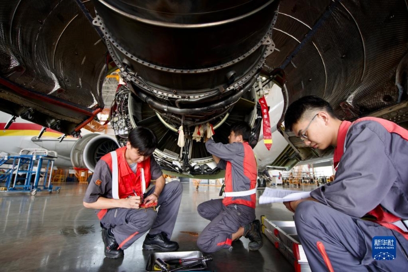 4月4日,在海南自貿(mào)港一站式飛機(jī)維修產(chǎn)業(yè)基地內(nèi),進(jìn)境飛機(jī)接受飛機(jī)發(fā)動(dòng)機(jī)、應(yīng)急設(shè)備等多項(xiàng)檢修項(xiàng)目。