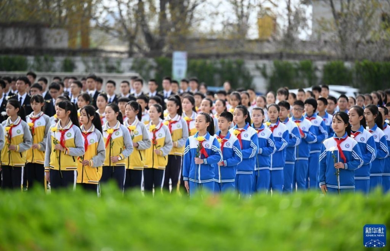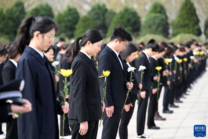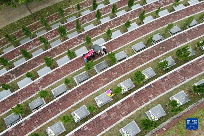 當(dāng)日是清明節(jié),人們前往各地烈士陵園,向英烈敬獻(xiàn)鮮花,寄托哀思。