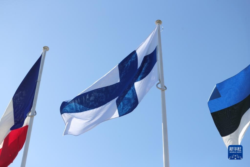 4月4日,芬蘭國旗在比利時布魯塞爾的北約總部飄揚。