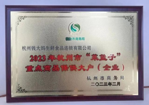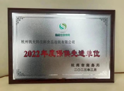 3月14日-15日,杭州市商務(wù)局在杭州千島湖召開(kāi)2022年度保供先進(jìn)單位及個(gè)人表彰大會(huì),同時(shí)舉行2023年保供重點(diǎn)企業(yè)簽約儀式。錢(qián)大媽?xiě){借在疫情期間保供穩(wěn)價(jià)、勇?lián)鐣?huì)責(zé)任的表現(xiàn),榮獲“2022年度保供先進(jìn)單位”,并獲評(píng)“2023年度杭州市‘菜籃子’重點(diǎn)商品保供大戶(企業(yè))”。
