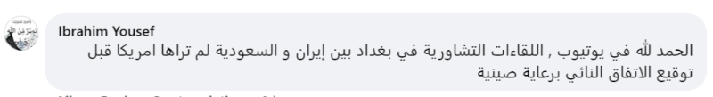 網(wǎng)友易卜拉欣·尤素福一語道破美國著急的原因:“此前沙特和伊朗在巴格達(dá)多輪接觸美國看不見,中國一出面他們馬上就關(guān)注到了?!?/p>