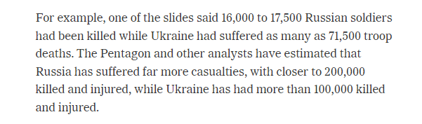 △《紐約時(shí)報(bào)》報(bào)道稱,疑似泄漏的文件里描述了俄烏沖突的具體情況