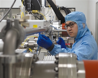 在合肥本源量子計(jì)算科技有限責(zé)任公司生產(chǎn)車間,技術(shù)人員正在進(jìn)行生產(chǎn)操作。代 群攝