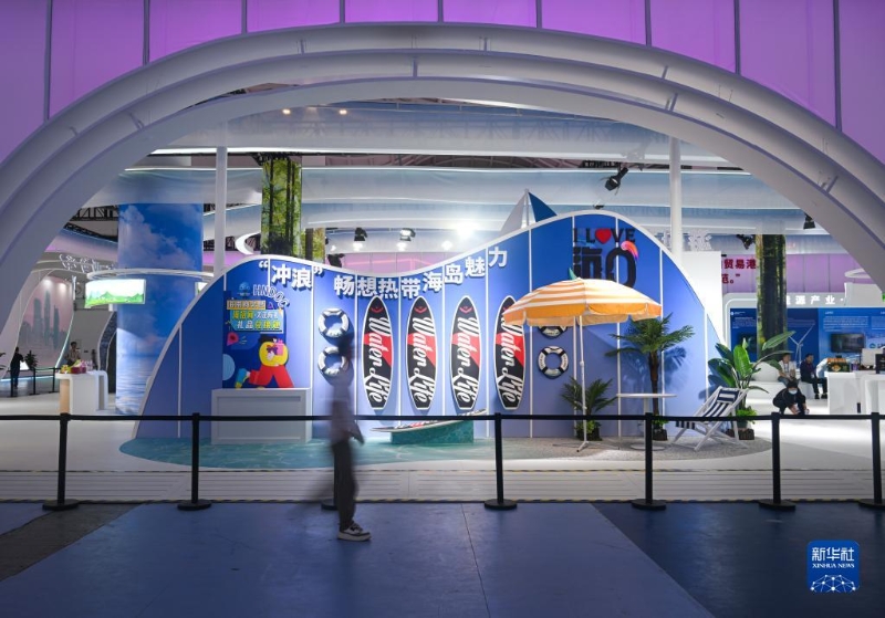 這是第三屆中國國際消費(fèi)品博覽會(huì)一處展臺(tái)(4月8日攝)。