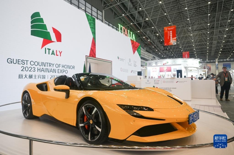 這是第三屆中國國際消費(fèi)品博覽會(huì)意大利主賓國展臺(tái)(4月8日攝)。