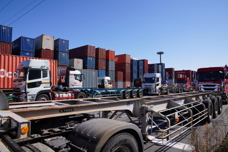 這是2月16日在日本東京拍攝的品川集裝箱碼頭。新華社記者張笑宇攝
