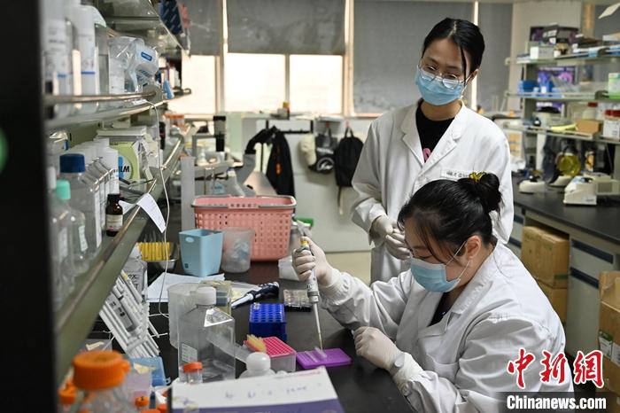 圖為3月24日,吳淑寧(左)和師妹在位于廣東廣州的暨南大學(xué)的實(shí)驗(yàn)室準(zhǔn)備做實(shí)驗(yàn)。 中新社記者 陳楚紅 攝