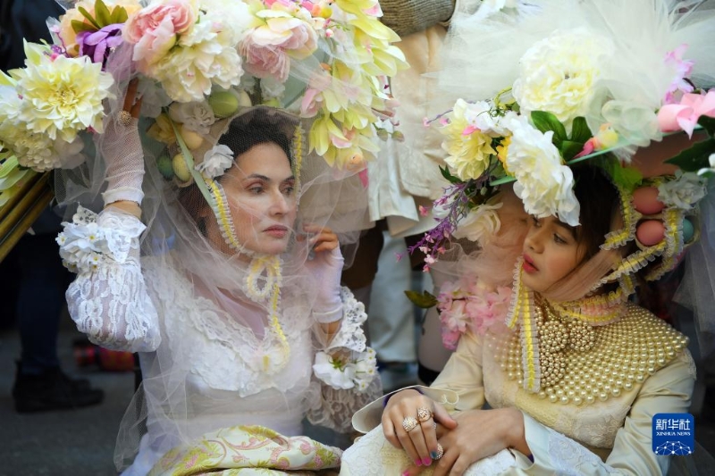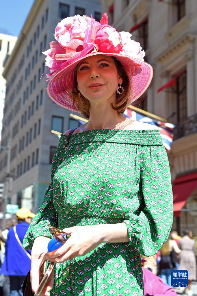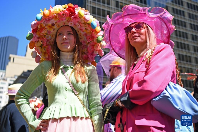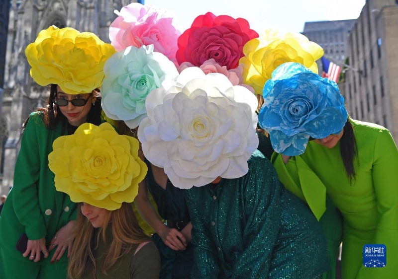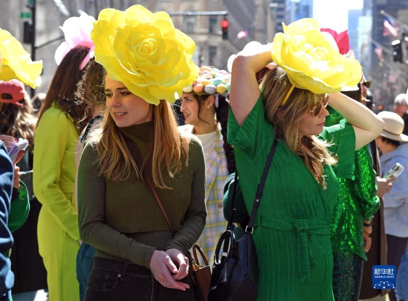 當(dāng)日是西方傳統(tǒng)節(jié)日復(fù)活節(jié),人們頭戴精心制作的花帽,在紐約第五大道參加一年一度的復(fù)活節(jié)游行。