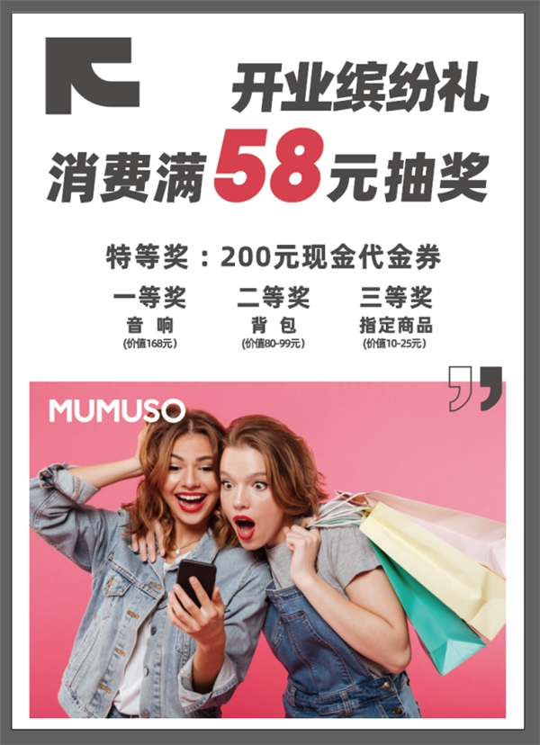 MMS廣西百色店推出新店開業(yè)酬賓,消費者進(jìn)店消費滿58元即可參與抽獎,詳細(xì)內(nèi)容如下: