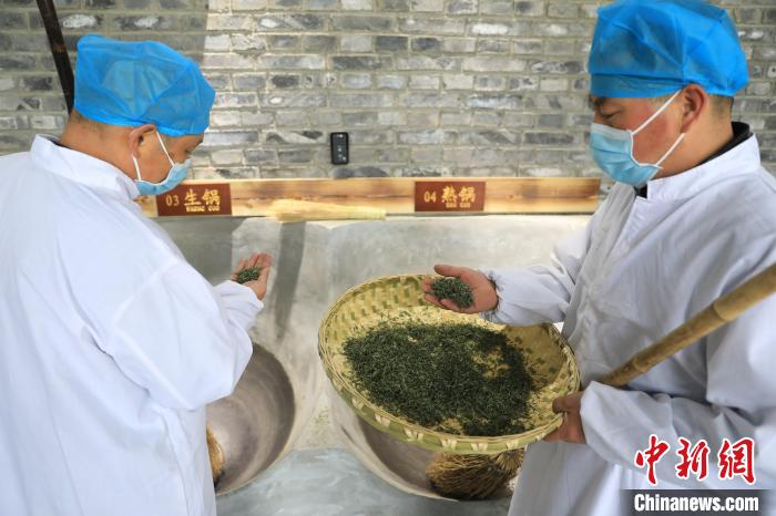 在周祖宏看來,炒茶的十余道工序絲毫不可大意,稍不留神就會毀掉一鍋茶葉。說著,他手握一把茶葉從虎口處甩出,“甩條是為茶葉塑形,用的是腕力,手中茶葉甩出三分之二即可,防止重復(fù)動作時燙手”。