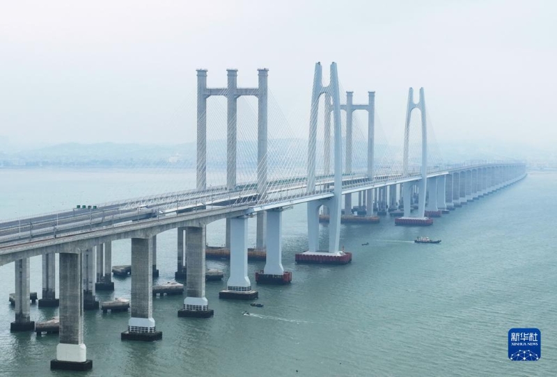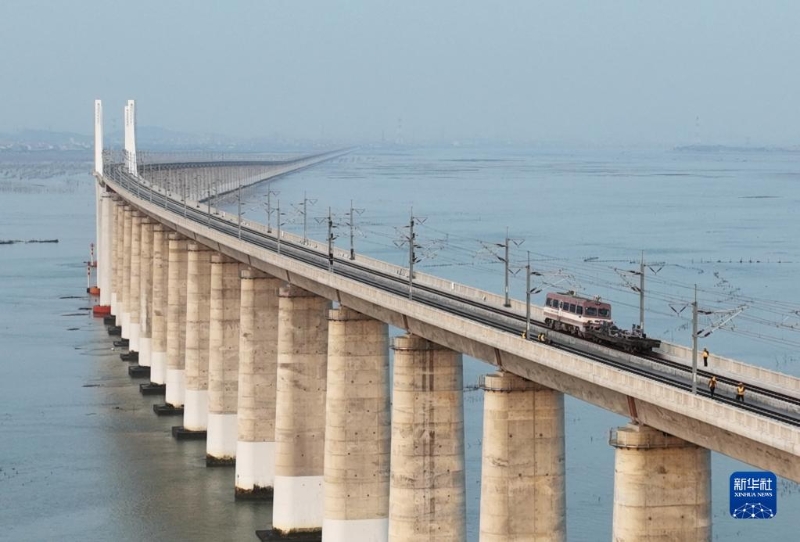 新建福廈鐵路泉州灣跨海大橋(4月12日攝,無人機照片)。