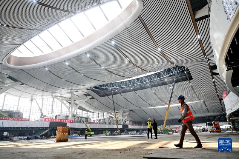 4月13日,中鐵建設(shè)集團有限公司施工人員在新建福廈鐵路廈門北站站房進行內(nèi)部裝飾。