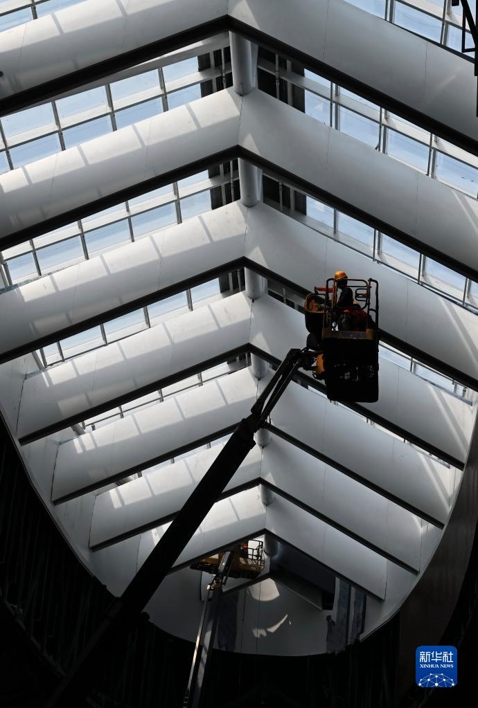 4月13日,中鐵建設(shè)集團有限公司施工人員在新建福廈鐵路廈門北站站房進行智能天窗裝飾包邊作業(yè)。