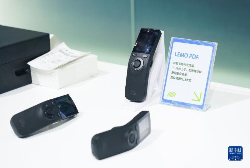 這是菜鳥展臺展出的國產(chǎn)智能手持作業(yè)終端,它可以助力提高物流分揀效率(4月13日攝)。
