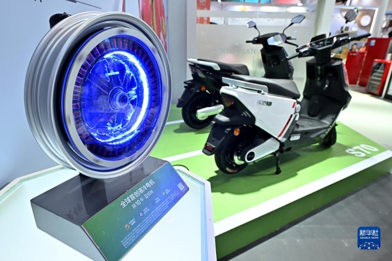 這是浙江展臺展示的綠源電動車液冷機芯,它可以提高電機效率、增加電動車?yán)m(xù)航(4月13日攝)。
