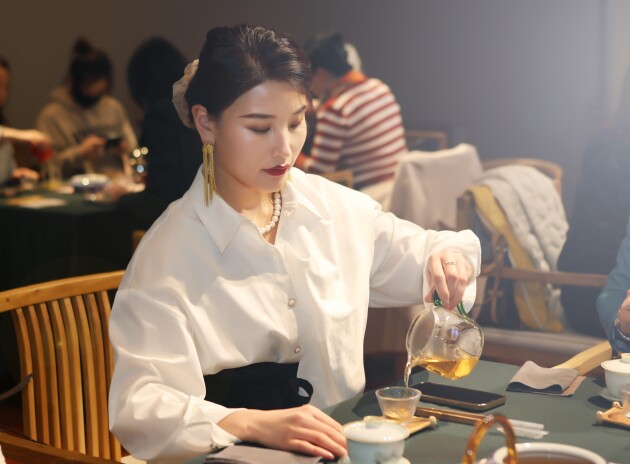 第二重——觀。伴隨著古琴充滿禪意的曲調(diào),茶藝師開(kāi)始進(jìn)行品香等茶藝表演,蜜絲會(huì)員們用心觀摩,領(lǐng)略茶藝的清雅韻味。