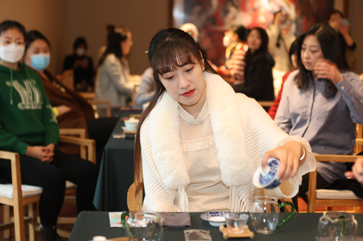 第一重——入。入靜安然,在茶藝師的引領(lǐng)下,大家逐漸靜下心神,全身心步入茶藝寧?kù)o致遠(yuǎn)的境界。