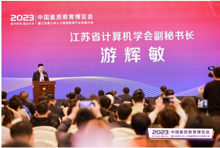 全國工商聯(lián)民辦教育出資者商會會長翟志海會長,江蘇省科協(xié)黨組成員、副主席李千目,全國工商聯(lián)宣教部一級巡視員李忠春,江蘇省科協(xié)二級巡視員李政,江蘇省青少年科技教育協(xié)會競賽部部長,江蘇省計算機學會副秘書長游輝敏等相關(guān)領(lǐng)導嘉賓主席,會議圍繞“數(shù)字教育 融創(chuàng)未來”為主題,大會包含特邀報告、論文報告、江蘇省計算機科普基地授牌儀式,及年度相關(guān)表彰活動等多項內(nèi)容,為與會代表提供豐富的交流平臺:致力于交流素質(zhì)教育、人工智能教育等相關(guān)領(lǐng)域的研究成果及經(jīng)驗,探討關(guān)鍵性挑戰(zhàn)問題及解決方案。