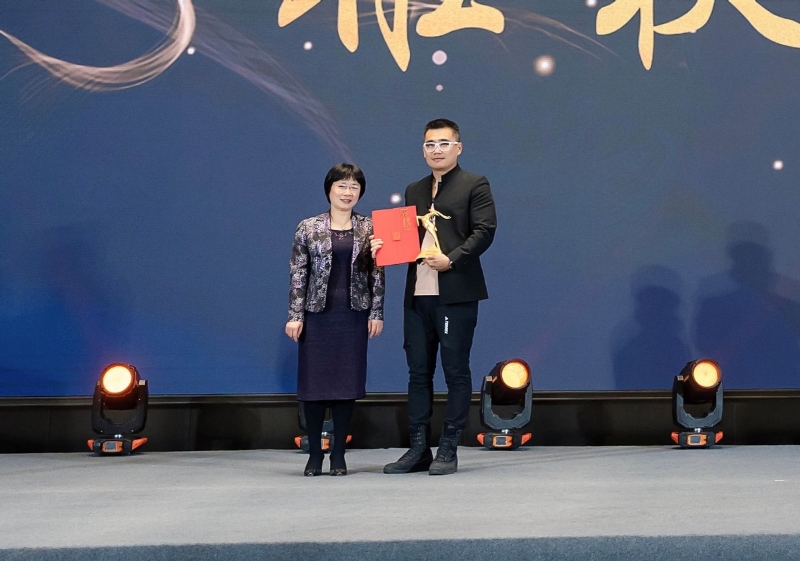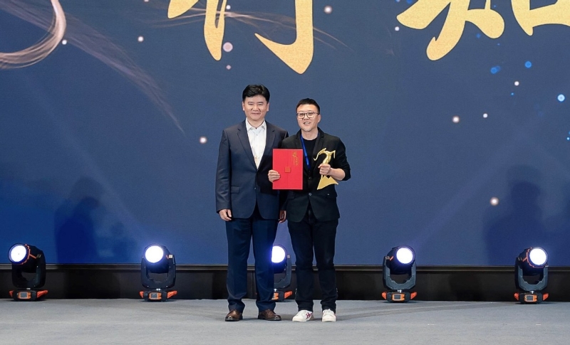 華奧星空科技發(fā)展有限公司總裁秦吉宏為“金羚羊”策劃獎獲獎單位行知探索文化發(fā)展集團(tuán)頒獎
