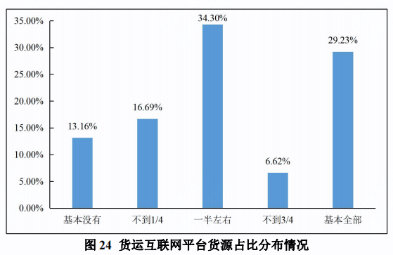 顯然,將運(yùn)價(jià)低簡單歸因于網(wǎng)絡(luò)貨運(yùn)平臺(tái),這是不公平的。網(wǎng)絡(luò)貨運(yùn)平臺(tái)的出現(xiàn)其實(shí)大大提升了貨車司機(jī)的工作效率。調(diào)查數(shù)據(jù)顯示,76.01%的貨車司機(jī)使用過網(wǎng)絡(luò)貨運(yùn)平臺(tái),市場普及率較高。在使用過網(wǎng)絡(luò)貨運(yùn)平臺(tái)的貨車司機(jī)中,近三成(29.23%)的貨車司機(jī)反映貨源基本來自網(wǎng)絡(luò)貨運(yùn)平臺(tái),超過七成(70.15%)的貨車司機(jī)有一半以上的貨源來自網(wǎng)絡(luò)貨運(yùn)平臺(tái)。