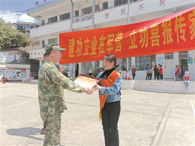 “我長大也要當兵!”圍著方山榮老師,學生們紛紛許下心愿。這一刻,一顆從軍報國的種子在他們心中生根發(fā)芽。