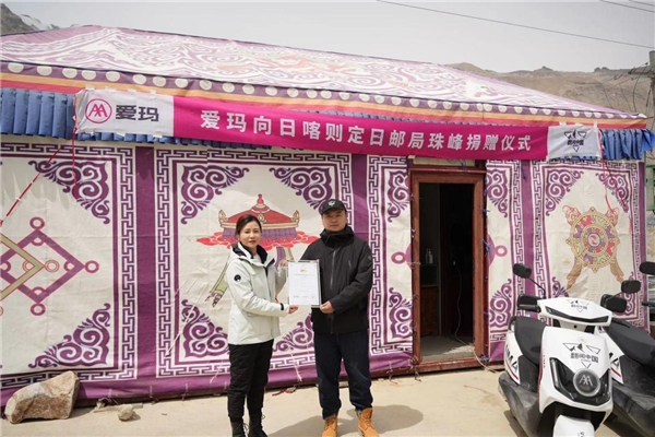 4月15日,愛瑪電動(dòng)車在世界之巔的“珠峰”舉行了一場特別的捐贈(zèng)儀式——向中國最高郵局“日喀則定日郵政分公司”捐贈(zèng)20臺(tái)愛瑪勇士F626,以解決西藏地區(qū)因地形起伏大、路況復(fù)雜而造成的郵遞員派送出行難的問題,這一天也是愛瑪翻閱中國車隊(duì)成功登上珠峰大本營的神圣時(shí)刻。