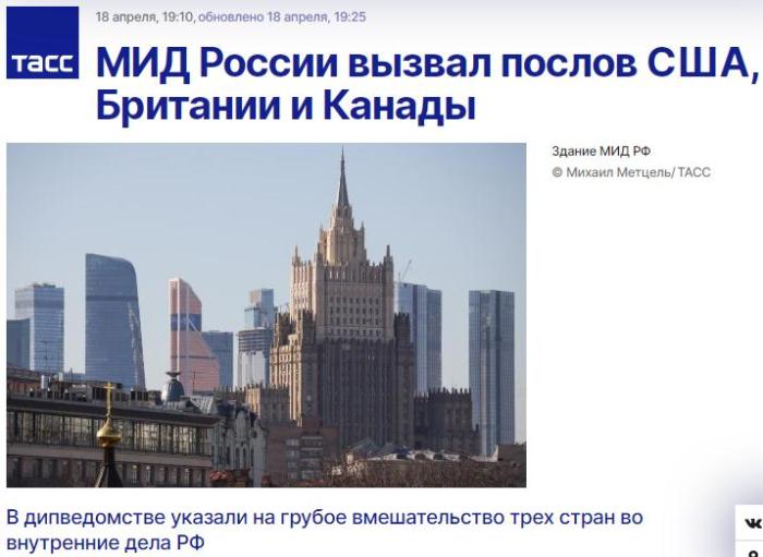 據(jù)報道,俄外交部表示,“由于粗暴干涉俄羅斯內(nèi)部事務(wù)和從事不符合外交地位的活動,美國、英國和加拿大的大使被俄外交部召見?!?/p>
