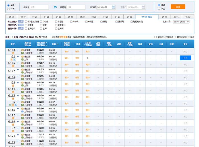 中新財(cái)經(jīng)18日登錄12306官網(wǎng)查詢發(fā)現(xiàn),4月29日由北京出發(fā)到上海、武漢、南京、西安的旅客列車車票已基本售罄,上述線路4月30日車票也所剩無(wú)幾。