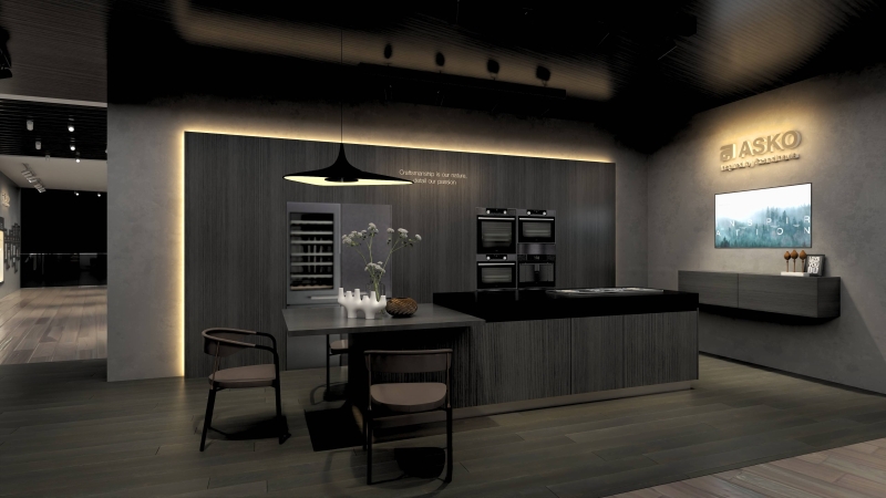 沉浸式展臺將ASKO的產(chǎn)品特色呈現(xiàn)得淋漓盡致,每一處細(xì)節(jié)都散發(fā)著斯堪的納維亞的可持續(xù)生活哲學(xué)美學(xué)觀念,細(xì)節(jié)之處展現(xiàn)著北歐人文風(fēng)情與功能主義。隱藏式背光設(shè)計,勾勒出每一件產(chǎn)品優(yōu)美的線條,以更純粹的方式與空間完美融合,處處散發(fā)著生活美學(xué)的魅力。此次設(shè)計,深度詮釋斯堪的納維亞設(shè)計和工匠精神的結(jié)合,注重功能和耐用度,將產(chǎn)品的卓越性能優(yōu)勢根植于頂級生活方式之中,將非凡匠意和生活美學(xué)融入每一寸空間,讓更多人看見理想生活的樣子。