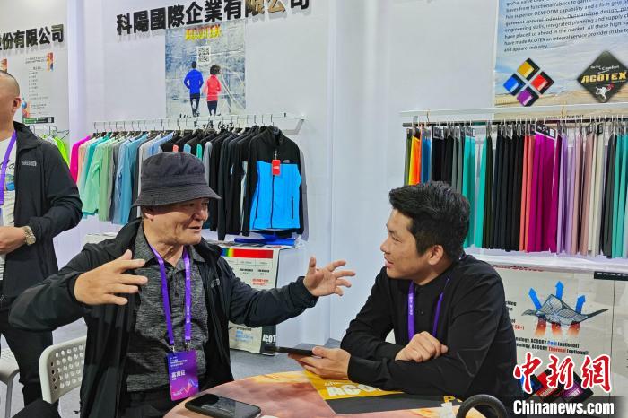 在臺(tái)灣館,多家臺(tái)灣紡織企業(yè)帶來紡服新科技,主打各式功能性面料、配件及終端產(chǎn)品,以及部分自主研發(fā)的復(fù)合功能性紡織品,頗受廠商、采購商青睞。