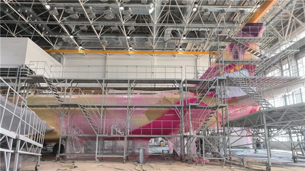 在山東日照,中國(guó)聯(lián)合航空創(chuàng)意版標(biāo)準(zhǔn)機(jī)進(jìn)行了褪漆、打磨、清洗、噴繪等各環(huán)節(jié),離其向世界驚艷亮相的日子越來(lái)越近了。