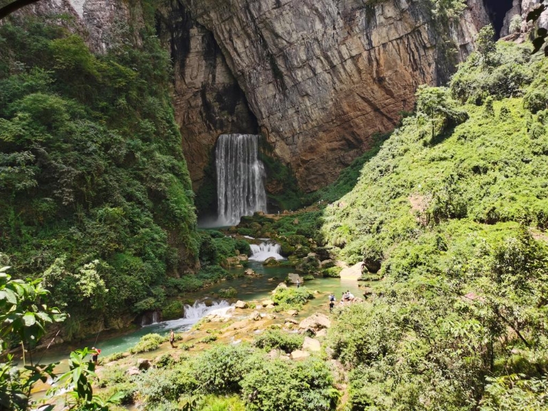 網(wǎng)紅打卡地羊皮洞瀑布。新華社記者 鄭明鴻 攝