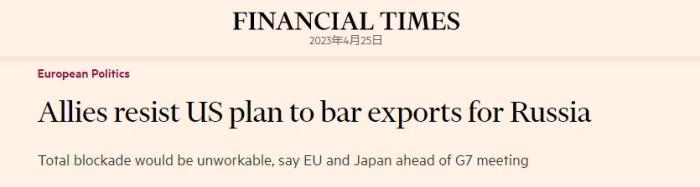 中新網(wǎng)4月26日電 綜合外媒報(bào)道,七國(guó)集團(tuán)(G7)領(lǐng)導(dǎo)人廣島峰會(huì)臨近,美國(guó)近日被曝提出了一項(xiàng)提議,試圖對(duì)俄羅斯實(shí)施幾乎全面的出口禁令。但美國(guó)的提議卻遭到歐盟和日本的拒絕,直言“這根本是不可能的”。